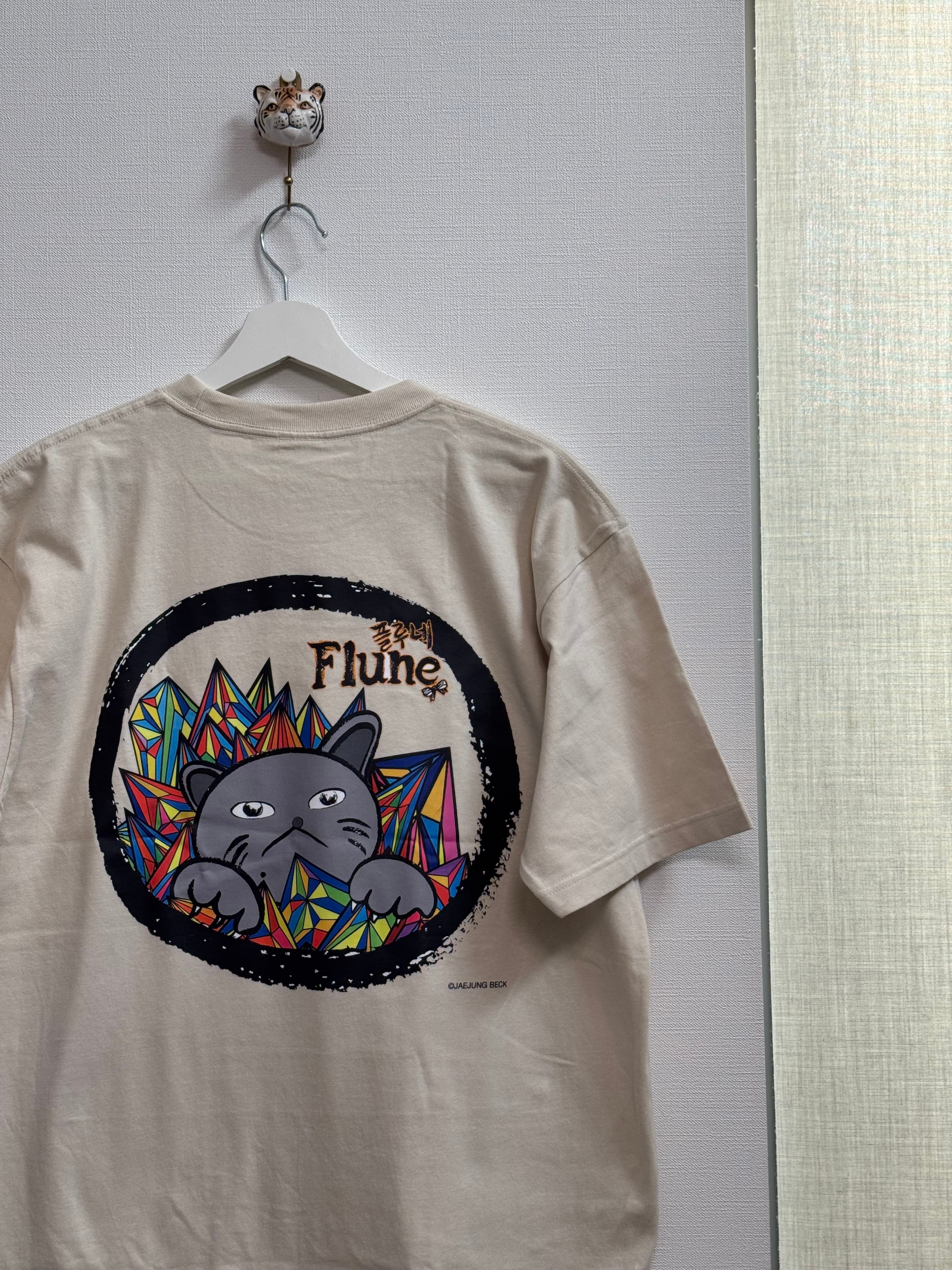 JAEJUNG BECK氏にフルネノネコをモチーフにデザインしていただきました。メンズ雰囲気なカッコいいTシャツです。アイボリーベージュ。