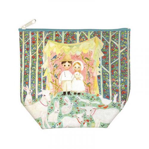 yagi柄は、牧場でヤギ飼いをしている2人のまわりに、他にもウサギやネズミ、アヒルやテンなど、ホワイト動物のお友達が集まってきています、森のカラフルな小鳥達が今にも歌い始めそうなシーンです。